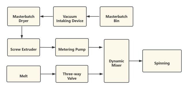 دستگاه ریس مستقیم مذاب می تواند به راحتی از رنگارنگ های کاربردی استفاده کند را با سیستم افزودن ما بسازد. وقتی از آن استفاده نمی شود، به راحتی می توان آن را تغییر داد. همچنین میتوان آن را برای بسیاری از مواد دیگر که نیاز به مخلوط کردن یکنواخت مانند فیلمها یا جوهرها دارند، اعمال کرد.
